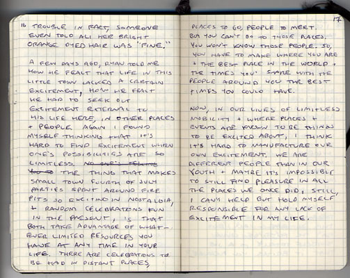 i realize that i'm bad at having crushes. it's been more than a month, i've realized, since there's been anyone that i've been excited to encounter around town. and just seeing other people who i'd consider to be good at having crushes go from day to day, i don't know if it's a lack of interest in myself, or a lack of ability, or a difference in personality, but i just don't have it in me to have that constant awareness of my attraction to others, and when that awareness comes easy, i don't have the social skills or the desire to participate in the act of having a crush. it's like the satisfaction, even in something as simple and nonexistant as an unspoken but implicitly acknowledged mutual attraction, isn't enough to warrant the awkwardness that i feel in trying to figure those things out. i've found the few instances where i've detected some kind of interest direct towards to be terrifying just because i'm overwhelmed with trying to handle that responsibly knowing that indulging too much in it would probably just end up with someone's feelings hurt or being in a relationship that i wasn't comfortable with. and the thing about this is that it's not a very big deal. when the akward subject of how many people you've kissed in the last year came up last night, i didn't feel too bad that my number could be represented in a single binary digit, but i guess it would be nice, in those fleeting moments when one does want something more, for things to be a little easier.